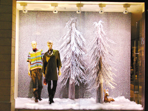 除了燈飾,估計(jì)很多女孩子最喜歡看的還是商店櫥窗吧。雖然已經(jīng)有部分品牌已經(jīng)開始打折,不過一來不是那些十分大牌的品牌,二來折扣也未算去到最低,吸引力剛夠你的心跳那么一下而已。比它們更吸引的是大牌子專賣店的櫥窗。和廣州的商家不同,澳門的品牌專賣店櫥窗大多都是由專門的櫥窗設(shè)計(jì)師負(fù)責(zé)打理的,通常都會(huì)設(shè)計(jì)得很立體和整體性很強(qiáng),譬如某品牌的節(jié)日裝修就是從櫥窗后面“種”出好幾棵許愿樹,把櫥窗和正常的店面連接起來,模特就穿著當(dāng)季服飾站在樹下,任顧客去仔細(xì)研究,甚至你伸手去摸也沒關(guān)系。