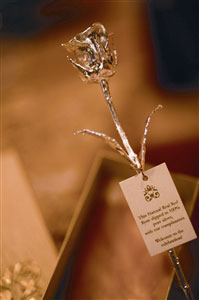 圖:蘸上純銀的鮮花玫瑰回贈嘉賓。(圖片來源:澳門日報)
