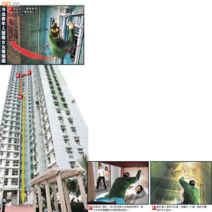 中新網(wǎng)11月8日電 香港藍田昨晨發(fā)生罕見襲擊案。一名冷血青年在二十多層高的大廈外墻以飛索亡命游繩,摸黑攀窗潛入前女友睡房,向她頭部及胸部狂插九刀,咽喉割開,刀刀奪命。