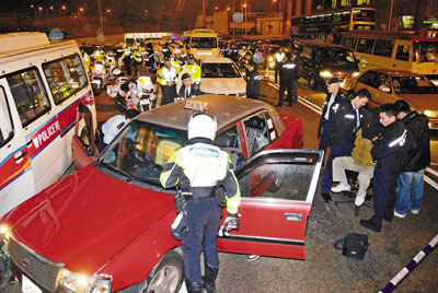 中新網(wǎng)1月25日電 香港一名司機涉嫌以偷來的士做無本生意多時,24日晚在銅鑼灣因沖紅燈惹起交警注意后逃走,結(jié)果掀起一幕由港島追到九龍全長22公里的警匪飛車追逐戰(zhàn),賊的士后于東隧九龍出口收費廣場撞毀一部電單車及一部警車后始停下,亡命司機當(dāng)場束手就擒,但共有7名警民受傷送院,包括的士司機。
