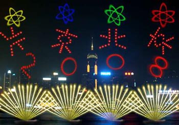 另外,展開序幕的是市民耳熟能詳?shù)馁R歲歌曲《財(cái)神到》,配合一個接一個在空中出現(xiàn)的“8”圖案,寓意國家富強(qiáng),人民生活富足,“一國兩制”成功落實(shí),祖國及香港欣然面對無限的發(fā)展機(jī)遇。