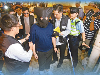 圖:探員押解疑犯到深水埗調(diào)查。(圖片來(lái)源:大公報(bào))