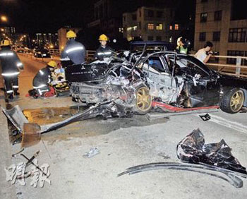 肇事跑車為三菱Evo VII跑車,警員事后發(fā)現(xiàn)跑車越線,現(xiàn)場(chǎng)遺下約20米的胎痕,正調(diào)查是否超速肇禍。與跑車迎面猛撼的私家車由朱姓24歲休班女警駕駛,朱某送院后情況穩(wěn)定,她通過(guò)酒精呼氣測(cè)試。