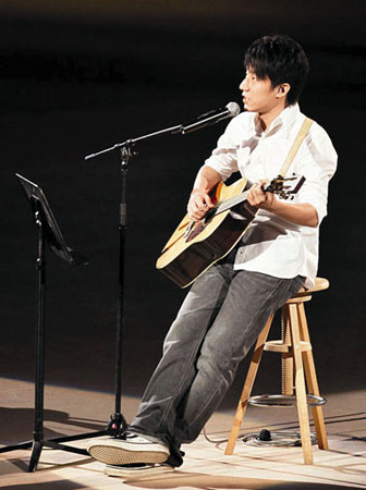 圖:房祖名自彈自唱送給四川災(zāi)區(qū)人民。(圖片來源:文匯報(bào))