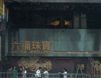 香港五級(jí)火災(zāi)閣樓卡拉OK夜總會(huì)一片焦黑。(圖片來(lái)源:大公報(bào))