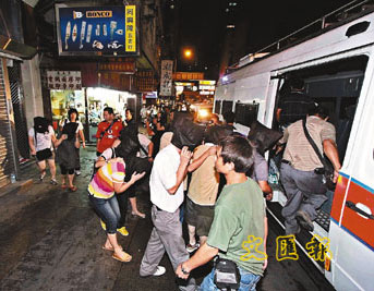 涉聚賭男女由探員押上警車。(圖片來源:文匯報(bào))