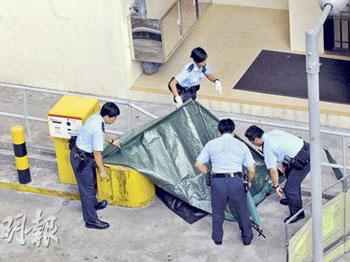 事發(fā)于28日早8時(shí)20分,身穿恤衫西褲的梁某離開(kāi)何文田寓所,走到紅磡樂(lè)民新村樂(lè)善樓8樓梯間徘徊,不一會(huì),他跨過(guò)一米高的矮墻一躍而下,直墮停車(chē)場(chǎng)入閘機(jī)旁,路旁?xún)擅讬跅U被壓毀呈“V“形凹陷。保安員吳某驚聞巨響視察,赫見(jiàn)梁某倒臥血泊奄奄一息,大驚報(bào)案,救護(hù)員到場(chǎng)檢驗(yàn)后證實(shí)梁當(dāng)場(chǎng)斃命,毋須送院。