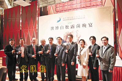 據(jù)香港文匯報(bào)發(fā)自澳門的報(bào)道稱,早前于澳門新葡京酒店舉行之“世紀(jì)白松露菌”國(guó)際拍賣會(huì),全球最大之白松露菌最后由澳門博彩股份有限公司行政總裁何鴻燊以33萬(wàn)美元投得。為了讓各方的賓客一嘗“世紀(jì)白松露菌”的神奇美味,澳博在新葡京宴會(huì)廳筵開16席,將重金投得的白松露菌制成美味佳肴,款待來(lái)自各地的嘉賓好友,香港文匯報(bào)社長(zhǎng)張國(guó)良伉儷、副社長(zhǎng)韓力也成為座上客。