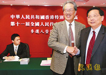 同樣即場遞交報名表的楊耀忠指出,已獲得60多份的提名,其中包括有民建聯(lián)主席譚耀宗、工聯(lián)會會長鄭耀棠等。他已提交了54份,剩下的會陸續(xù)交到登記處。他希望,競選連任后,可以繼續(xù)促進內地與香港的交流,關注內地教育的發(fā)展,協(xié)助內地與香港在教育方面的發(fā)展。至于新一屆港區(qū)人大競爭激烈,他認為,新一屆選舉多了許多不同界別的專業(yè)人士參選,是好事。