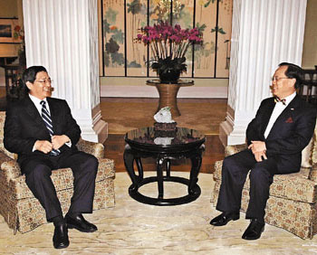 郭聲琨就共同推進(jìn)廣西北部灣經(jīng)濟(jì)區(qū)合作開發(fā)、廣西承接香港加工貿(mào)易產(chǎn)業(yè)轉(zhuǎn)移等內(nèi)容與曾蔭權(quán)深入交換了意見(jiàn)。并誠(chéng)邀曾蔭權(quán)出席今年6月在南寧舉行的第五屆泛珠合作論壇和今年10月在南寧舉行的第五屆中國(guó)—東盟博覽會(huì)。