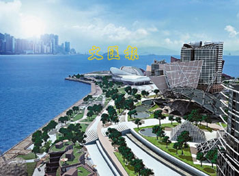 西九文娛藝術(shù)區(qū)計算機(jī)設(shè)計圖。(圖片來源:文匯報)