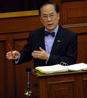 談到外匯儲(chǔ)備和外匯基金的管理時(shí),曾蔭權(quán)表示,兩者均由金融管理局管理,其表現(xiàn)不比其它地方投資銀行差,但由于今年市場(chǎng)波動(dòng)較大,相信今年有關(guān)工作相當(dāng)艱巨。