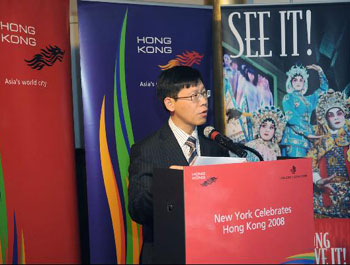 香港駐美國(guó)總經(jīng)濟(jì)貿(mào)易專(zhuān)員唐智強(qiáng)23日(紐約時(shí)間10月22日)出席“2008紐約香港節(jié)”的“香港美食饗宴”活動(dòng),向在場(chǎng)90多位名來(lái)自商界及媒體的代表致辭時(shí)表示,香港特區(qū)政府已因應(yīng)全球經(jīng)濟(jì)情況而制訂了兩項(xiàng)措施。