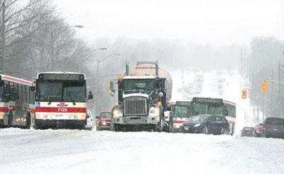 暴風(fēng)雪令多市全城陸空交通由早上開始嚴(yán)重受阻。多倫多公交、私家車等,全都延誤近1小時,有的甚至取消。