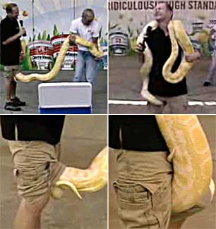 美國(guó)主持人動(dòng)物園錄節(jié)目 蟒蛇突然鉆進(jìn)褲管(組圖)