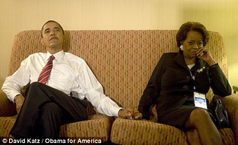 競選結(jié)果公布當(dāng)晚,奧巴馬和岳母一起等待結(jié)果