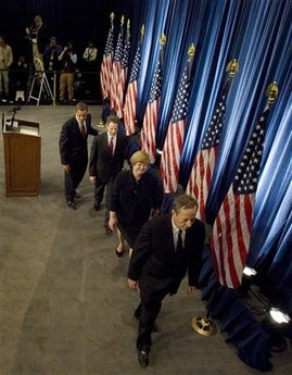 另外,24日的發(fā)布會(huì)沒(méi)有電視臺(tái)記者提問(wèn),而他們上次得到4次機(jī)會(huì)。同時(shí),7日的發(fā)布會(huì)按照布什的習(xí)慣,記者被要求不能使用筆記本電腦,這次則沒(méi)有禁止。還有幾名記者事后表示,雖然他們沒(méi)有事先被通知誰(shuí)能提問(wèn),但現(xiàn)場(chǎng)座位顯示其實(shí)早有安排?磥(lái),奧巴馬對(duì)布什的“顛覆”還不只在政策上,連白宮記者會(huì)也要玩新鮮的。不過(guò),他的副手表示,現(xiàn)行制度也并非完美。因此,奧巴馬上任后會(huì)怎么開(kāi)新聞發(fā)布會(huì),還是一個(gè)未知數(shù)。