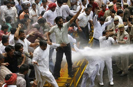 因此,每年五六月份印度人民黨上臺(tái)周年之際,瞿族人都會(huì)示威,不僅針對(duì)印度人民黨,也遷怒于負(fù)責(zé)全國(guó)種姓配額的中央政府,他們頻頻攻擊首都,還遷怒于長(zhǎng)期占據(jù)低種姓位置的米納族。