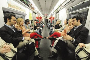 日前,15對(duì)同卵雙胞胎按照亞當(dāng)斯的要求,一起在紐約市布魯克林橋的地鐵站碰頭,15對(duì)同卵雙胞胎走進(jìn)地鐵車廂后,每對(duì)雙胞胎都排著隊(duì)各自坐在了過道兩側(cè)的座位上,并且每個(gè)雙胞胎要直接面對(duì)著自己的雙胞胎兄弟或姐妹。當(dāng)15對(duì)雙胞胎“各就各位”后,他們接下來要做的事就是盡可能保持動(dòng)作一致,如果一個(gè)雙胞胎用手撓頭,那么他的同卵雙胞胎也必須用手撓頭;一個(gè)雙胞胎看報(bào)紙,他的同卵雙胞胎也必須低頭看報(bào)紙?傊麄兙秃孟袷菍(duì)方的“鏡中影像”一樣。這些同卵雙胞胎還被告知,如果有乘客詢問他們到底發(fā)生了什么事,他們要表現(xiàn)得一無所知,甚至好像壓根沒看到坐在自己對(duì)面的同卵雙胞胎一樣。