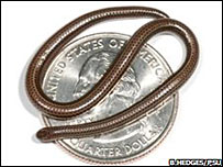 這種蛇全長只有10厘米,厚度象一根寬面條。