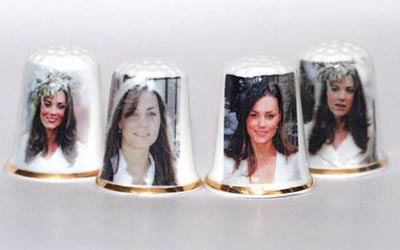 總部設(shè)在英國的一家中國頂針制造商的設(shè)計人員近日設(shè)計出一套以凱特為主題的頂針。每個頂針上都印有凱特的笑臉,而且每個頂針上的圖案都不同:凱特戴著不同款式的帽子。由于圖案有所區(qū)別,更增加了這套頂針的收藏價值。目前每套頂針的售價是4.40英鎊。