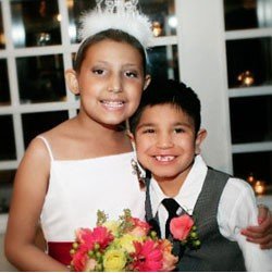 中新網(wǎng)2月25日電 據(jù)臺(tái)灣東森新聞網(wǎng)報(bào)道,美國(guó)德州出現(xiàn)一名9歲的小新娘,潔拉在父母的同意下披上婚紗,原來(lái)是因?yàn)樗净佳,可能不久于人世,她的父母因此決定,讓她跟在一名在醫(yī)院認(rèn)識(shí)的7歲小男孩荷西共結(jié)連理,雖然這場(chǎng)婚禮沒有法律效力,但仍然是一圓小女孩的新娘夢(mèng)。