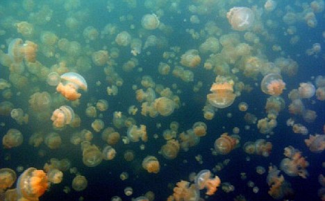據(jù)悉,帕勞水母湖曾是海的一部分,由于地殼運(yùn)動(dòng),周圍的海床升高,逐漸將它與外海隔絕,形成了一個(gè)看似普通的內(nèi)陸咸水湖。其不普通在于,湖中大多數(shù)海洋生物都隨著養(yǎng)分的消耗而消亡,只剩下了一種低等的、靠少量微生物就可以生存的海洋生物——水母。由于天敵們的消失,這些水母“遺失”了祖先用以防衛(wèi)自身的武器——身體內(nèi)的毒素。這樣,帕勞水母湖擁有了世界上獨(dú)一無二的無毒水母。