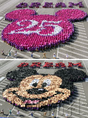中新網(wǎng)3月13日電 據(jù)日本共同社報(bào)道,東京迪士尼樂(lè)園為紀(jì)念開(kāi)園25周年,12日舉行眾人組成米老鼠圖案的活動(dòng)。