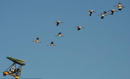 中新網(wǎng)4月22日電 據(jù)英國媒體報道,北美的鳴鶴因饑餓和疫情急劇減少,美國天然資源保護者為保護這一珍惜品種,在威斯康星州采用人工喂養(yǎng)項目。但是人工喂養(yǎng)的飛鶴喪失了冬天南徙的能力,喂養(yǎng)者于是用機動滑翔飛翼來引導它們?nèi)绾芜w徙。