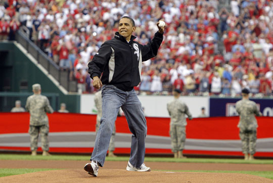中新網(wǎng)7月15日電 據(jù)美聯(lián)社等媒體報(bào)道,美國總統(tǒng)奧巴馬14日在圣路易斯為美國職業(yè)棒球全明星賽開球。事后接受采訪時(shí)他透露為了投出好球,他在白宮的玫瑰花園練習(xí)多次。
