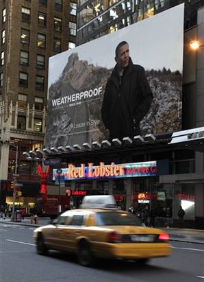 中新網(wǎng)1月7日電 6日,一幅奧巴馬的巨幅照片出現(xiàn)在美國紐約時代廣場,這一次奧巴馬的形象不再完全代表國家總統(tǒng),他成了一個外衣品牌的代言人。