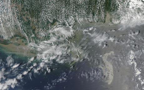 這幅由Aqua衛(wèi)星拍攝到的畫面顯示,墨西哥灣三周前發(fā)生的油井爆炸造成的原油泄漏影響依然明顯。美國(guó)宇航局發(fā)言人描述道,海面上浮著一層暗灰色油污,看起來(lái)形似天鵝。