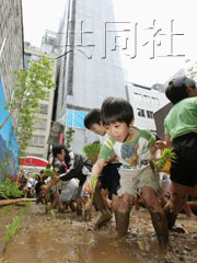 中新網(wǎng)5月30日電 高級(jí)品牌店羅列的東京銀座一丁目日前出現(xiàn)了水田!霸阢y座種大米2009”活動(dòng)30日正式拉開帷幕。
