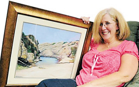 中新網(wǎng)7月23日電 ,現(xiàn)年55歲的英國(guó)寡婦菲爾金斯夫人一年前與丈夫到西班牙旅游歸來(lái)后,丈夫不幸染病死亡,為讓亡夫能永遠(yuǎn)“活”在自己身邊,她日前花了900英鎊請(qǐng)藝術(shù)家用亡夫的骨灰,把倆人最后出游的地方制作成一幅油畫。