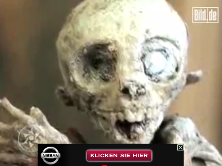 明星主持人、同時也是一位飛碟專家的茂森在其節(jié)目中指著已經被制成標本的外星人寶寶的照片,興奮地說:“我敢肯定這些照片都是真的!”
