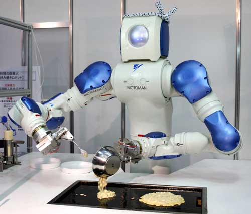 據(jù)悉,國際食品工業(yè)展9日在東京開幕。當(dāng)天,會做飯的機器人向在場的觀眾大秀技藝,展示只要有材料,機器人也確實能把面粉做成煎餅的。