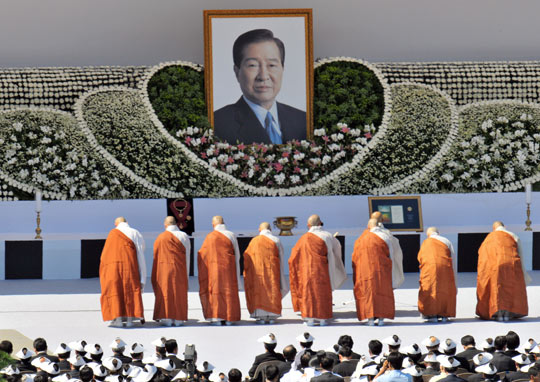 據(jù)韓國《中央日報》報道,以韓國總統(tǒng)李明博和前總統(tǒng)金泳三為首的主要人士以及駐韓使節(jié)、遺屬等參加遺體告別儀式,預(yù)計規(guī)模將是史上最大。政府現(xiàn)在邀請了2萬4000人參加遺體告別儀式。