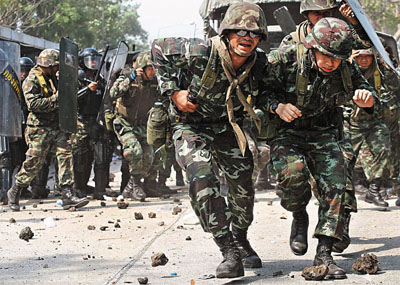 中新網(wǎng)4月10日電 據(jù)香港《文匯報(bào)》10日?qǐng)?bào)道,泰國(guó)反政府“紅衫軍”繼續(xù)不理會(huì)緊急狀態(tài)令,昨日發(fā)起大游行,沖擊被禁播的電視臺(tái),政府遂于連場(chǎng)示威中首次動(dòng)武,軍警施放催淚彈及水炮,但仍然無(wú)果,最后棄械撤退,紅衫軍成功占領(lǐng)電視臺(tái)。傍晚多個(gè)商場(chǎng)的顧客及員工被促離開(kāi),傳警方部署在6個(gè)地點(diǎn)拘捕示威領(lǐng)袖,并在一個(gè)集會(huì)地點(diǎn)清場(chǎng)。
