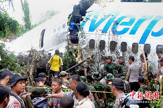 中新網(wǎng)4月14日電 據(jù)香港《文匯報(bào)》14日?qǐng)?bào)道,印度尼西亞鴿記航空一架載有103名乘客的波音737-300內(nèi)陸客機(jī),昨日在東部西巴布亞省降落時(shí)滑出跑道,墜河解體斷開兩截,造成最少78人受傷。目擊者稱,飛機(jī)左翼斷掉,機(jī)頭幾乎裂開。事故可能由大雨大霧天氣所致。
