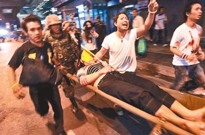 雖然軍方警告將會(huì)武力鎮(zhèn)壓示威者,許多外國(guó)旅客卻無所懼。32歲的美國(guó)游客霍爾德里奇23日到紅衫軍的示威場(chǎng)地拍照,認(rèn)為女友擔(dān)心會(huì)發(fā)生暴力沖突是杞人憂天。他說:“我不覺得有任何威脅,人人都很友善,四周都有免費(fèi)食物!逼溟g兩名背包客在不遠(yuǎn)處,與紅衫軍一同拍照留念。