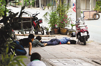 在示威區(qū),有居民自設圍欄,以免紅衫軍逃走時闖進。部分居民更急急收拾細軟離開。46歲的拉達與女兒拖著行李離開時說:“他們關掉所有燈,我們已沒有食物……過去兩晚最危險,所以要離開!