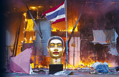 中新網(wǎng)5月20日電 據(jù)香港《文匯報》報道,泰國軍方19日清場,希望將陷入內(nèi)戰(zhàn)邊緣的曼谷拯救出來,雖然紅衫軍節(jié)節(jié)敗退,但有激進(jìn)分子未肯罷休,四處放火,電視臺、股票交易所、電力公司、幾間銀行、商場戲院都遭殃,商場和便利店亦成為搶掠目標(biāo)。據(jù)報曼谷有27處地方起火,泰國最大的商場Central World、Siam Square和Siam Paragon三大購物中心被縱火,其中Central World燒通頂,據(jù)報快將倒塌。