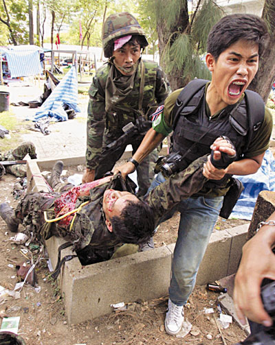 人權(quán)觀察亞洲地區(qū)副主管羅伯遜表示,曼谷局勢失控,是因為政府軍與紅衫軍都做錯了,他說:“我們促請雙方尊重醫(yī)護人員和消防員,讓他們執(zhí)行任務(wù),以及停止違法使用致命武力,并確保試圖逃離暴力的民眾獲得安全通道。”
