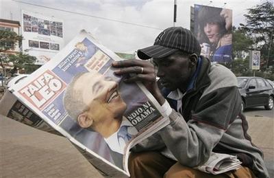 肯尼亞4日出版的報紙大幅登載有關(guān)奧巴馬的報道!犊夏醽啎r報》用整個頭版刊登了奧巴馬在白宮前的一幅照片,標(biāo)題為“奧巴馬創(chuàng)造歷史”。