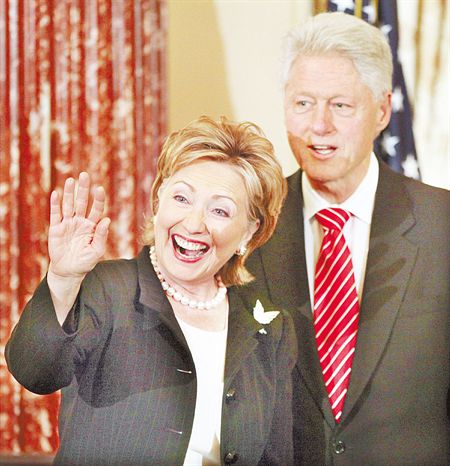 中新網(wǎng)2月4日電 美國(guó)新任國(guó)務(wù)卿希拉里2日在華府美國(guó)國(guó)務(wù)院宣誓就職,她致詞時(shí)刻意消遣自己和丈夫克林頓說(shuō),“我要好好感謝他,這輩子帶給我各式各樣的經(jīng)驗(yàn)”,而說(shuō)到”各式各樣“時(shí)加重語(yǔ)氣,似乎暗指克林頓當(dāng)年的風(fēng)流韻事,引來(lái)哄堂大笑。