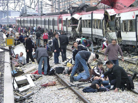 2004年3月11日西班牙首都馬德里近郊4列客運(yùn)列車(chē)接連發(fā)生炸彈爆炸。共有191人死于那起該國(guó)有史以來(lái)最嚴(yán)重的恐怖襲擊事件,另外還有1856人受傷。