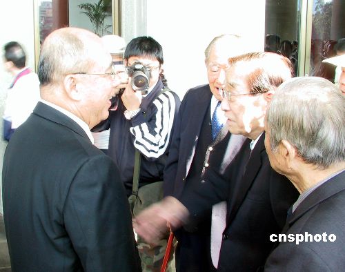 吳伯雄與黨內(nèi)元老李煥在交談中。