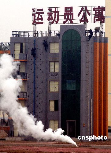 中國反恐特種部隊(duì)演練解救運(yùn)動員人質(zhì)。