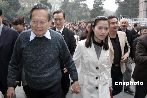 11月12日,著名物理學(xué)家、諾貝爾獎得主楊振寧攜夫人翁帆回到故鄉(xiāng)安徽合肥,準(zhǔn)備參加首屆僑界精英安徽發(fā)展論壇大會。中新社發(fā) 張婭子 攝