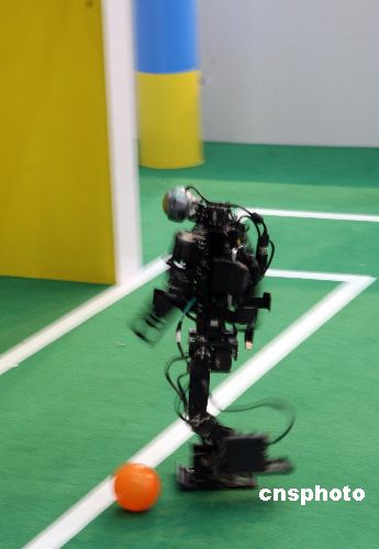 11月14日,海峽兩岸機器人足球賽在重慶大學(xué)鳴鑼開賽,來自國際科技大學(xué)、上海交通大學(xué)、清華大學(xué)、華南理工大學(xué)、重慶大學(xué)、成功大學(xué)、中正大學(xué)、淡江大學(xué)、長庚大學(xué)、高雄第一科技大學(xué)等海峽兩岸知名高校的機器人,將分為人形機器人和中型機器人兩種組別進(jìn)行比賽。據(jù)悉,比賽是由重慶大學(xué)自動化學(xué)院、中國自動化學(xué)會機器人競賽委員會主辦。中新社發(fā) 郭晉嘉 攝